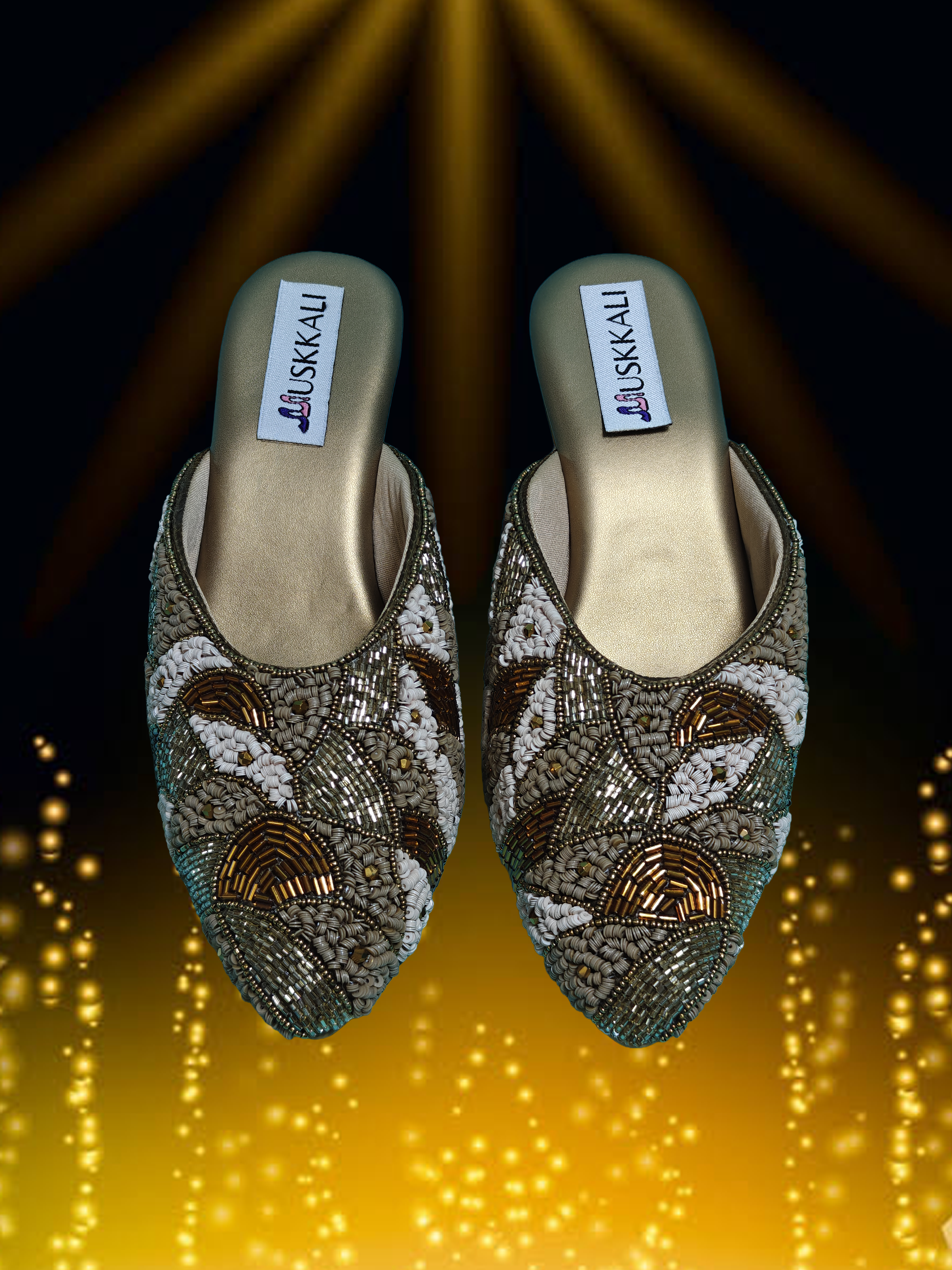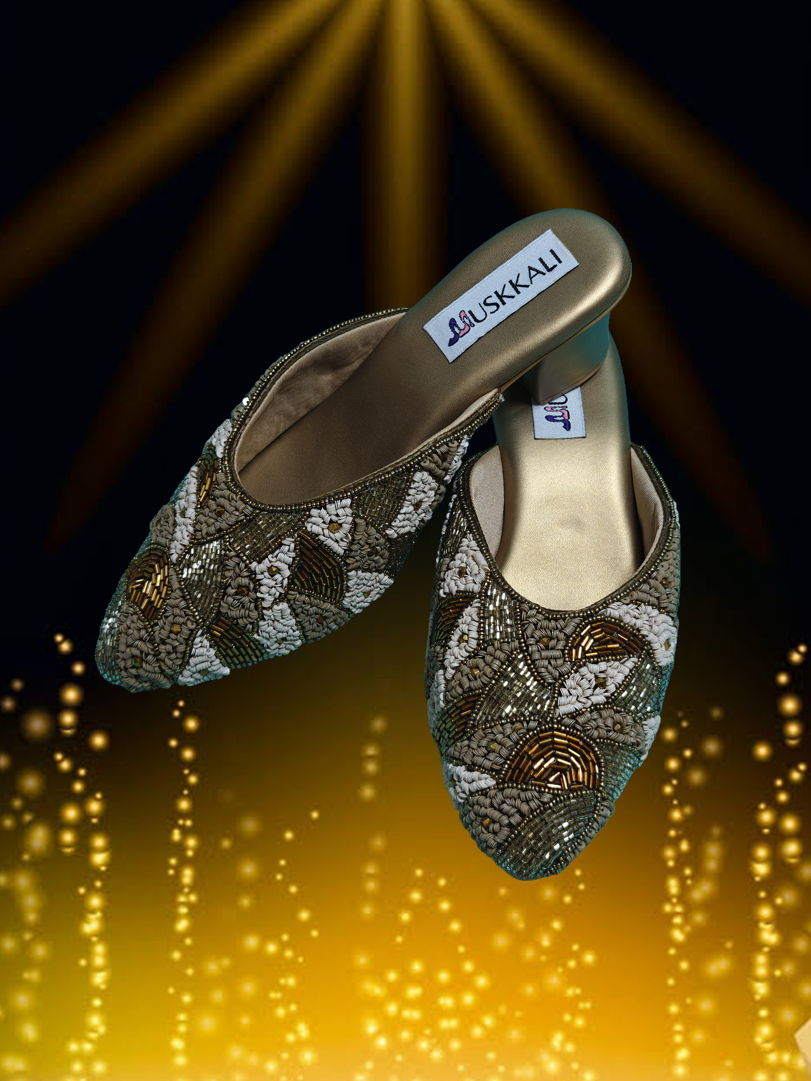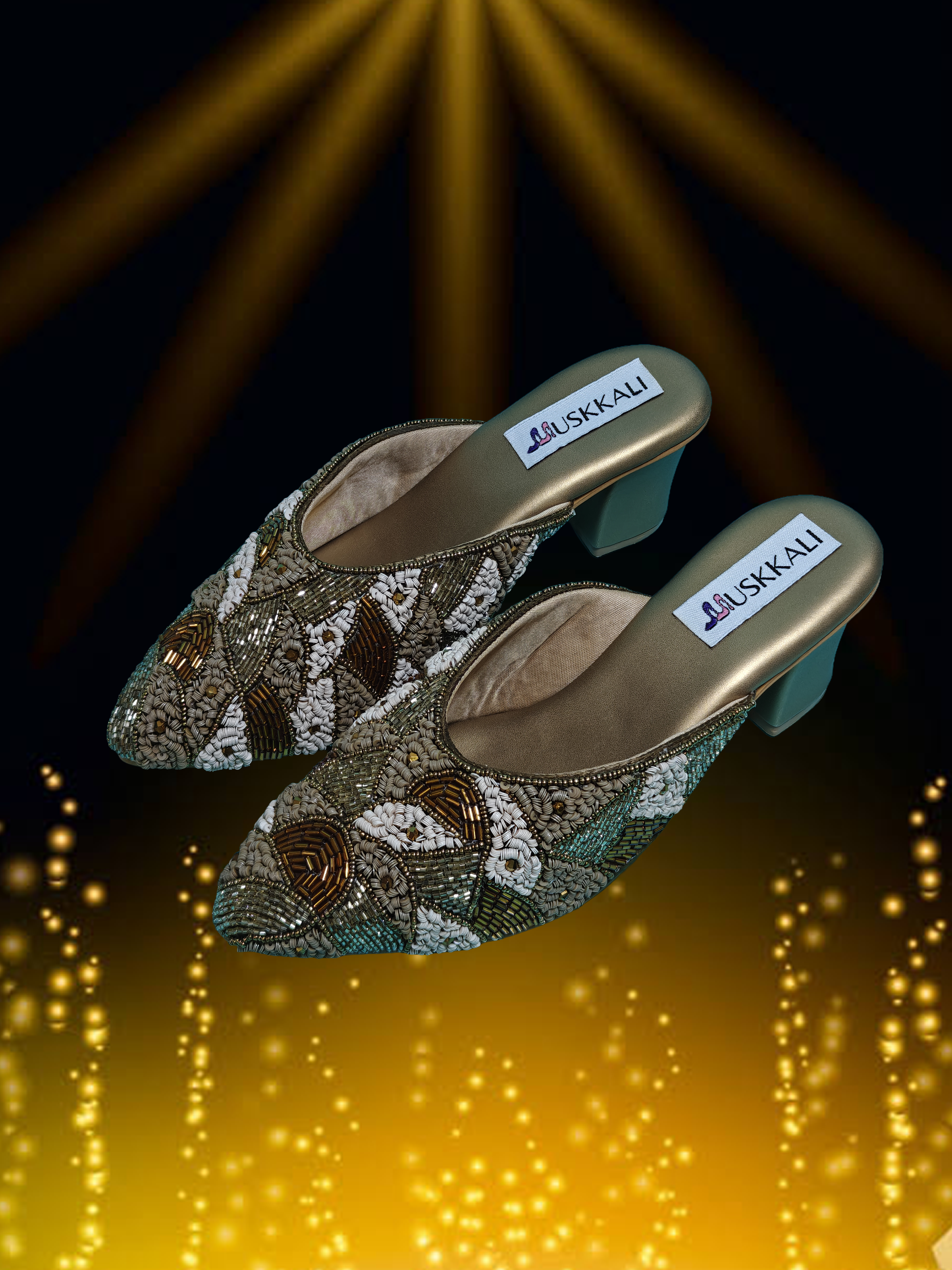 These mules are the epitome of regal elegance, featuring heavy, artisanal embellishments that make them a standout choice for high-end festive wear.