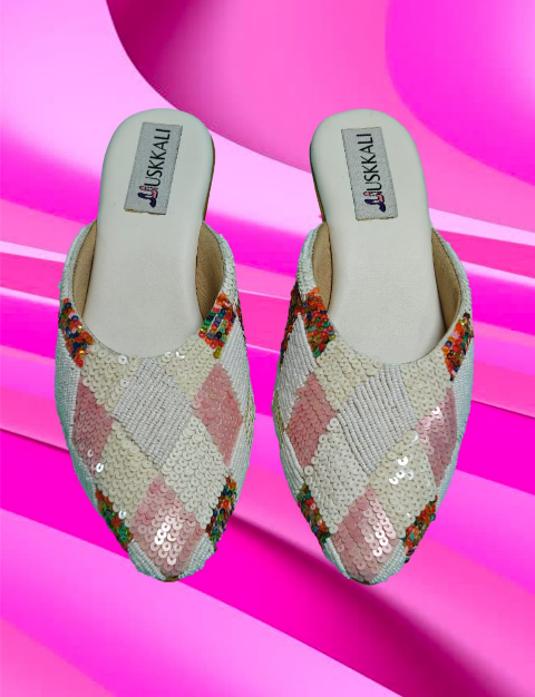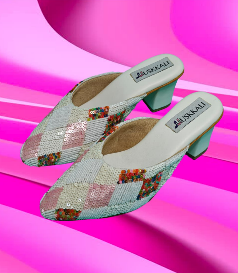 These sequinned mules are a vibrant blend of traditional craftsmanship and contemporary flair. Featuring a sophisticated pointed-toe silhouette, they are perfect for adding a touch of festive elegance to any ensemble.